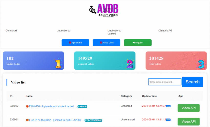 If you’re looking to fetch Japanese AV content reliably, AVDBAPI offers a structured API that can be programmatically accessed per video. The script/plugin demonstrates how to use this API to crawl entire collections, process metadata, and store them—particularly suited for WordPress systems.