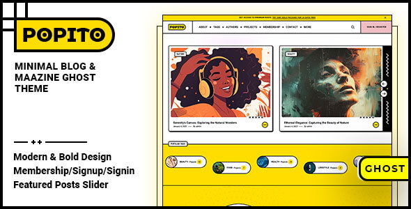 Popito is a premium WordPress theme, created by Frenify, designed for bloggers, creatives, and online magazine publishers. It features a clean, comic-book-inspired aesthetic with bold typography and vibrant design elements—perfect for making your content pop.